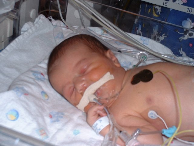 Zachary came out of surgery, now was the challenge to see how he reacts to everything from the surgery. Zachary was in the CVRU (Cardio Vascular Recovery Unit) for about 6 or7 days. It was so hard to see him and we could only see him for 15 minutes every 4 hours! He was the only baby in there everyone else was elderly. But everyone who was there was so good to us and to him. What a great comfort to know that your baby was getting great care. They tried to take Zachary off the breathing tubes but were unsuccessful. Eventually they moved Zachary out of the CVRU and back in to the NICU. Again the staff of nurses we had was awesome.